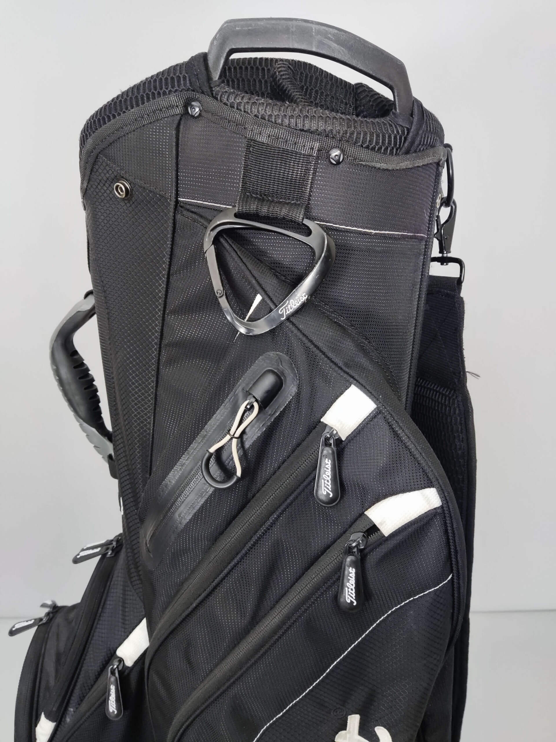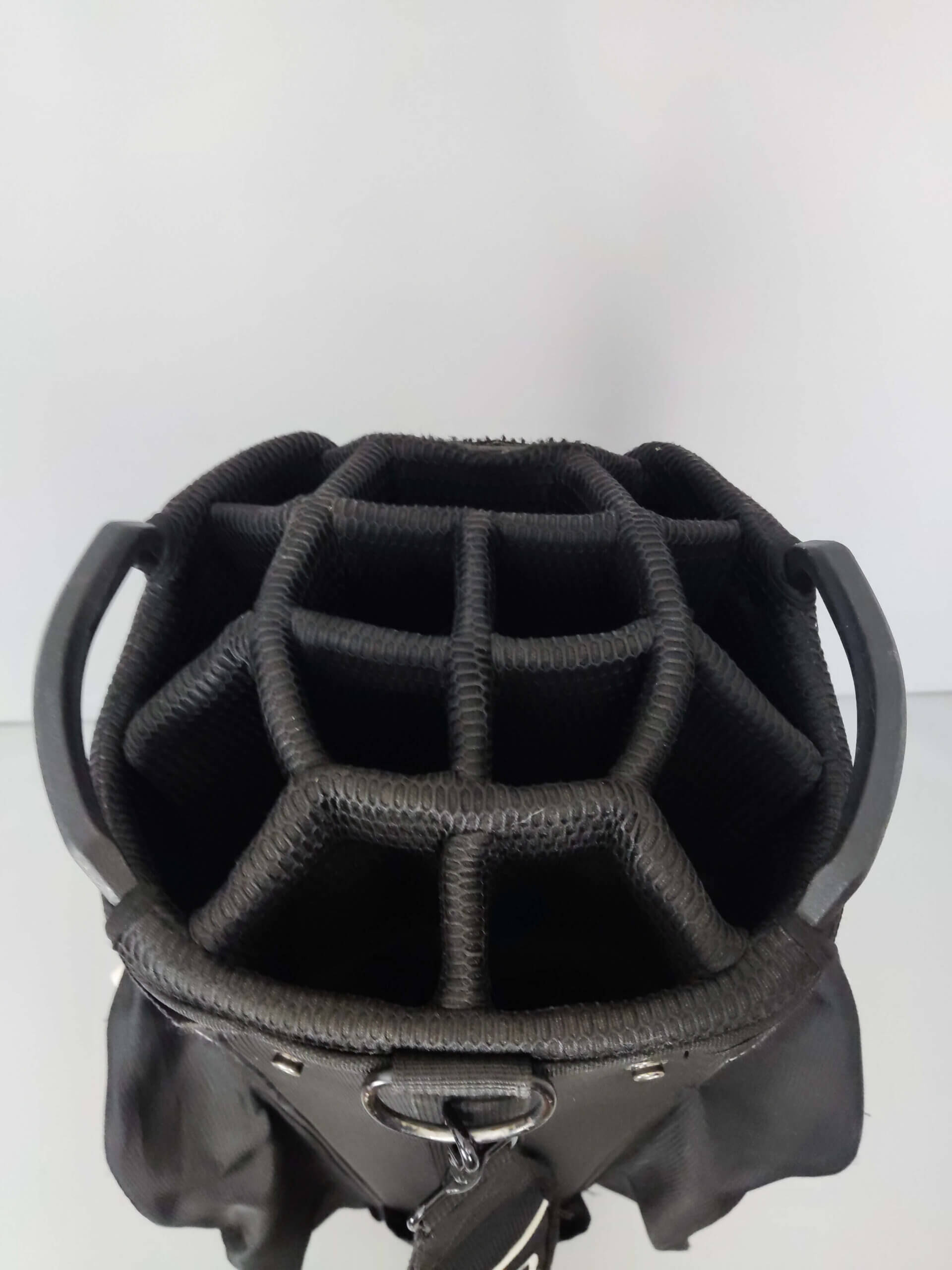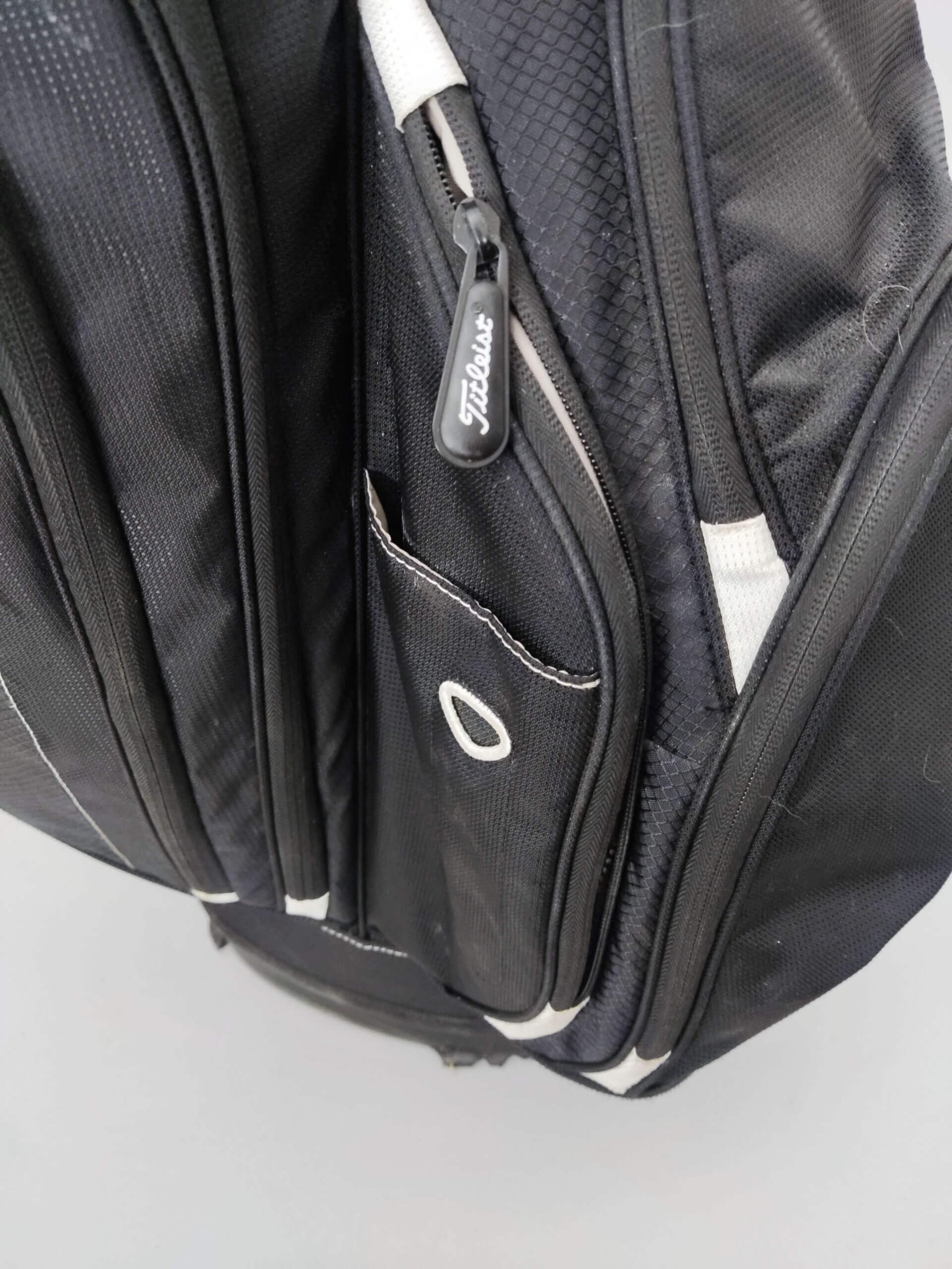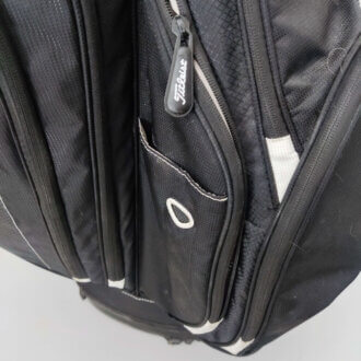 Ena fickan lägst ner till vänster enligt sista bild stänger inte, skav högst upp där man sätter i klubborna vid ett fack